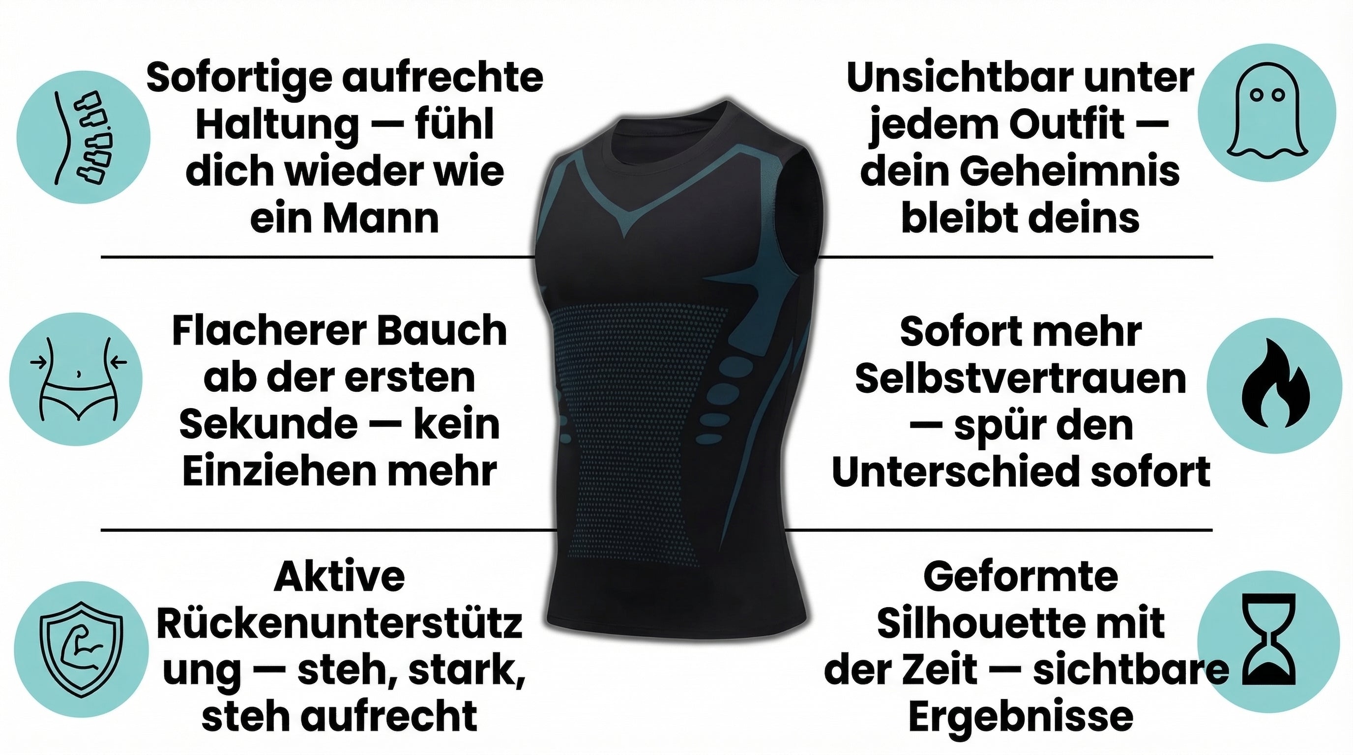 « Anfangs war ich skeptisch. Ich hatte immer diesen kleinen Bauchansatz, den ich unter meinen Hemden versteckt habe. Nach 4 Wochen mit SCULPD™ – täglich 4 Stunden getragen – habe ich 5 cm Taillenumfang verloren und eine aufrechte Haltung zurückgewonnen. Sogar meine Freundin meinte, ich würde eine ganz andere Ausstrahlung haben. »